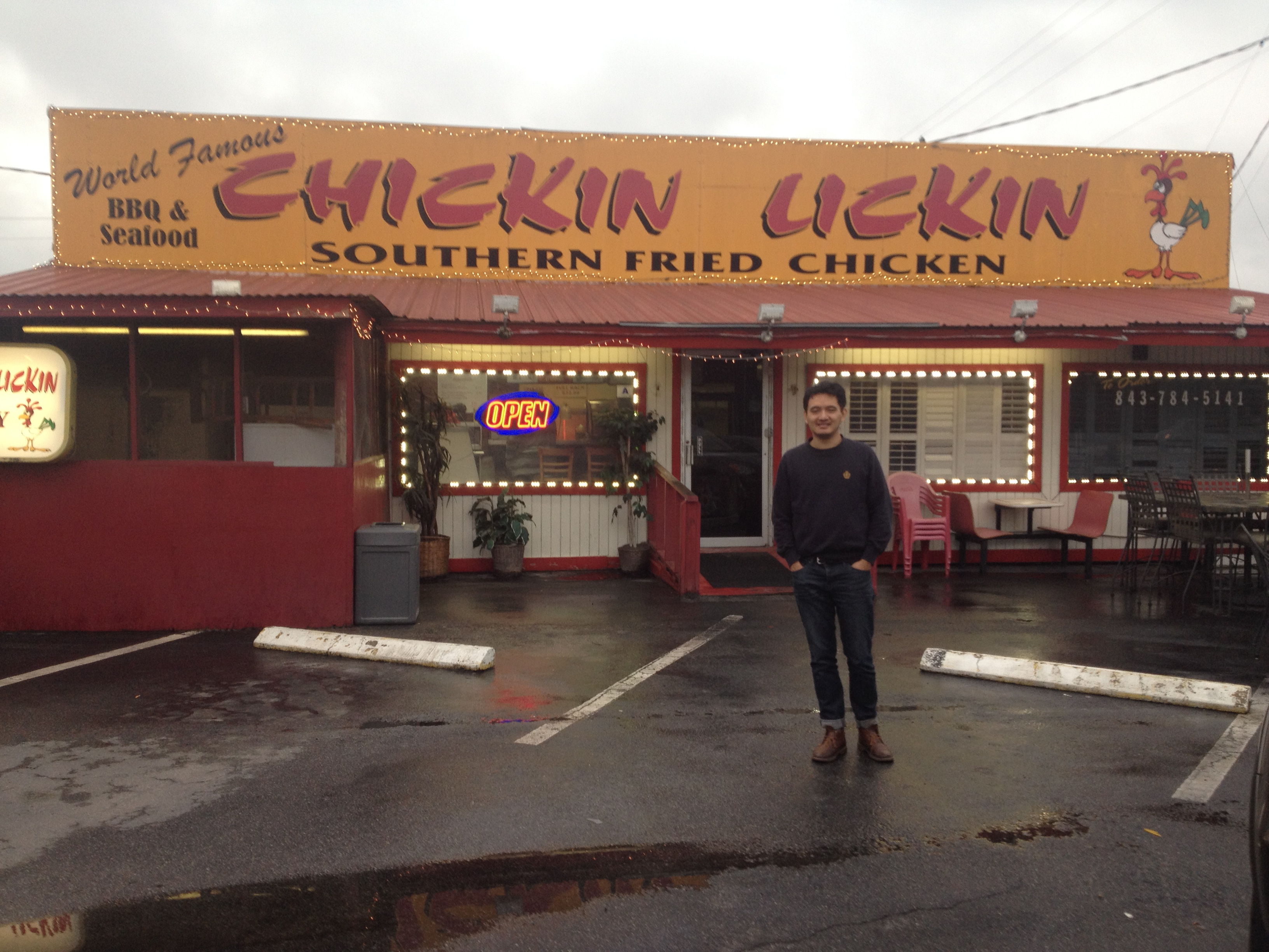 Yesterday, driving from N.C. to FL was quite an adventure. Being food lovers, we couldn’t drive through South Carolina or Georgia without stopping for some good southern BBQ or fried chicken! We found this awesome little spot called Chicken Lickin’ right off I-95 in Hardeeville SC. Best BBQ pork sandwich I’ve ever had! This is Diwas outside the place after we ate, happy, full, ready to hit the road 🙂